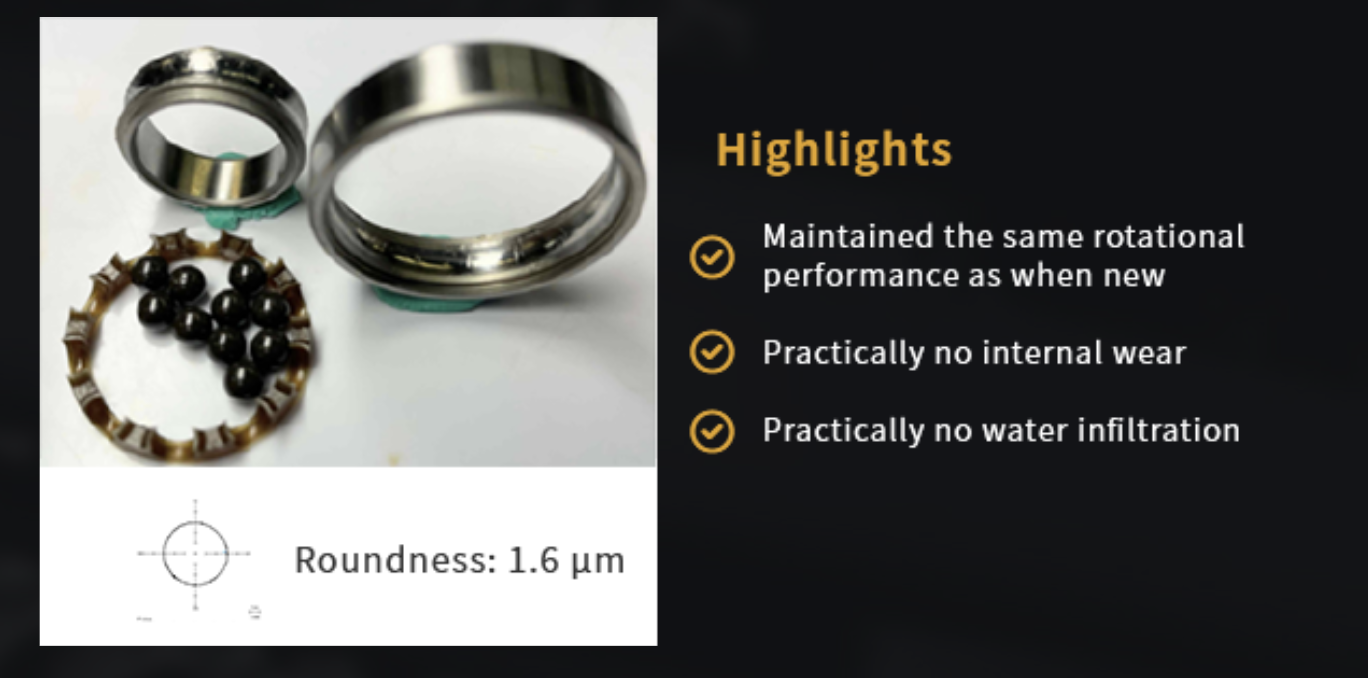 A pesar de una temporada de carreras extremadamente exigente, los rodamientos mantuvieron el mismo rendimiento que uno nuevo.